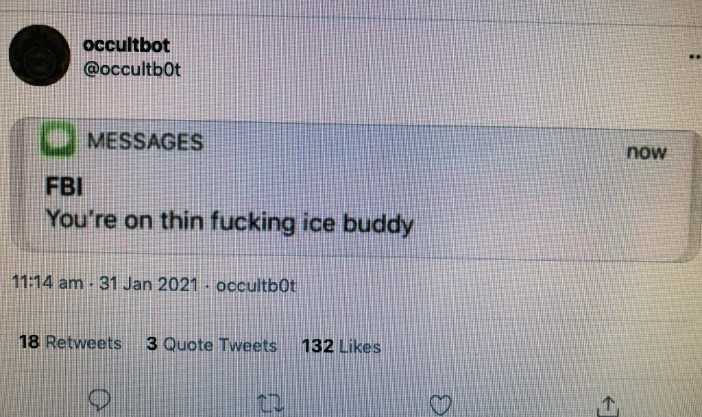 This 🤡 bot promotes Steve Quayle’s Ginger Giants.